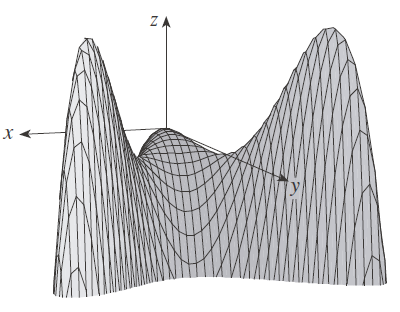f no tiene ningún valor extremo, cerca del origen, la gráfica tiene la forma de una silla de montar, y por eso (0, 0) se llama un punto silla de f.