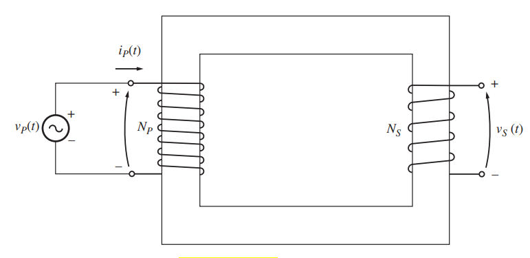 Un transformador con NP vueltas de alambre en su lado primario y NS vueltas de alambre en su lado secundario. La relación entre el voltaje vP(t) aplicado al lado primario del transformador y el voltaje vS(t) producido en el lado secundario es: