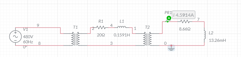 Nótese que al elevar el voltaje de transmisión del sistema de potencia se reducen las pérdidas de transmisión casi 90 veces. Además, el voltaje de la carga cayó mucho menos en el sistema con transformadores en comparación con el sistema sin transformadores.