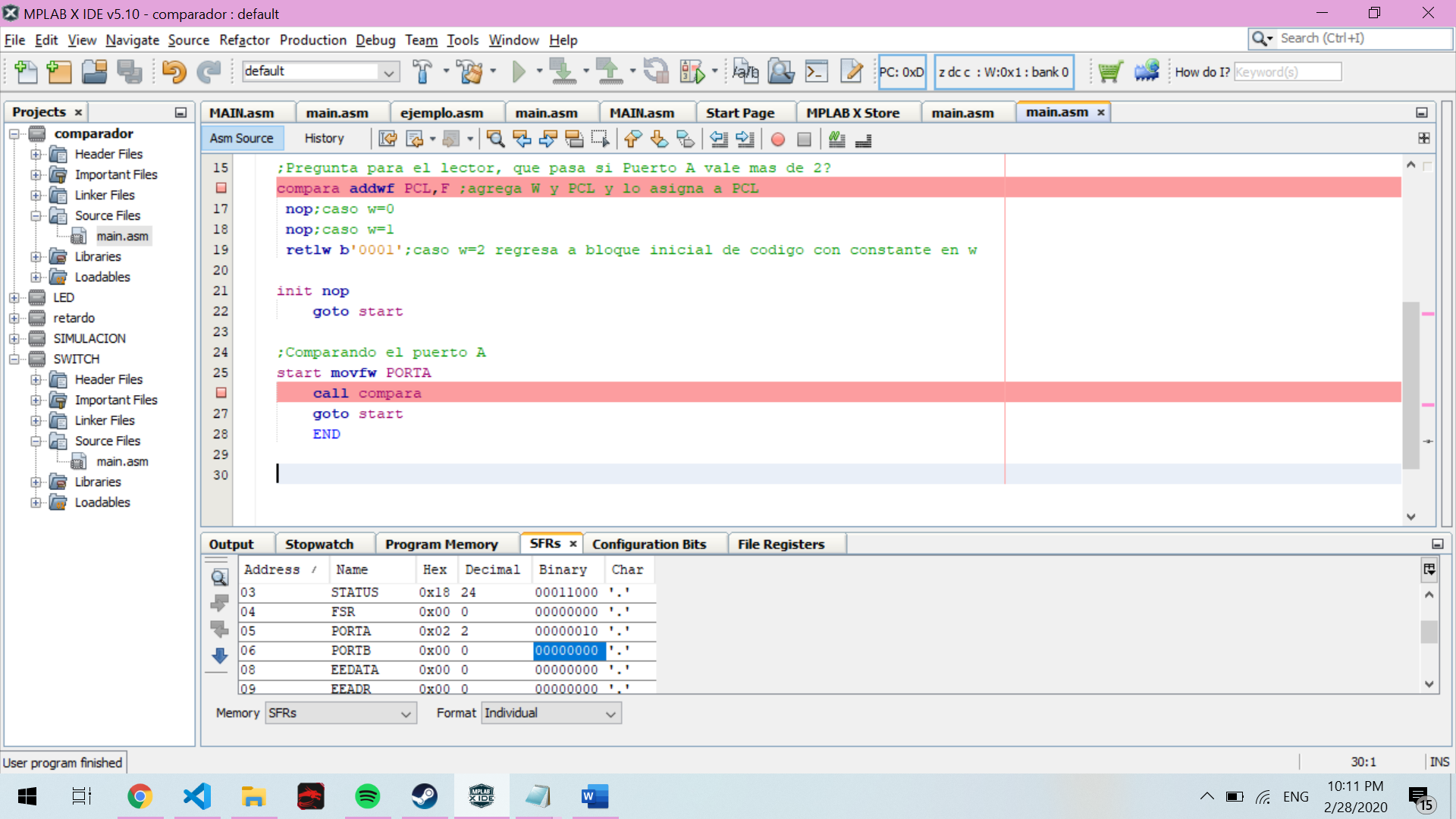 1. Una serie de interruptores conectados al Puerto B efectúan las siguientes operaciones: