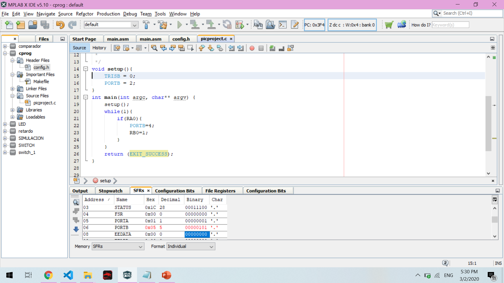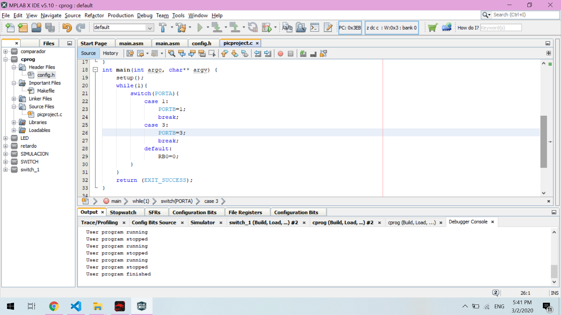 2. Interruptor conectado al puerto B bit 3 inicia la siguiente secuencia: