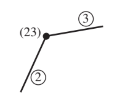 Al saber que una velocidad tangencial es perpendicular al radio de giro, entonces un nodo de rotación es un CIV que relaciona el eslabón M con el eslabón fijo 1, que se denota por C1M , el cual se puede obtener al prolongar e intersecar los radios de giro, como se muestra en la figura.