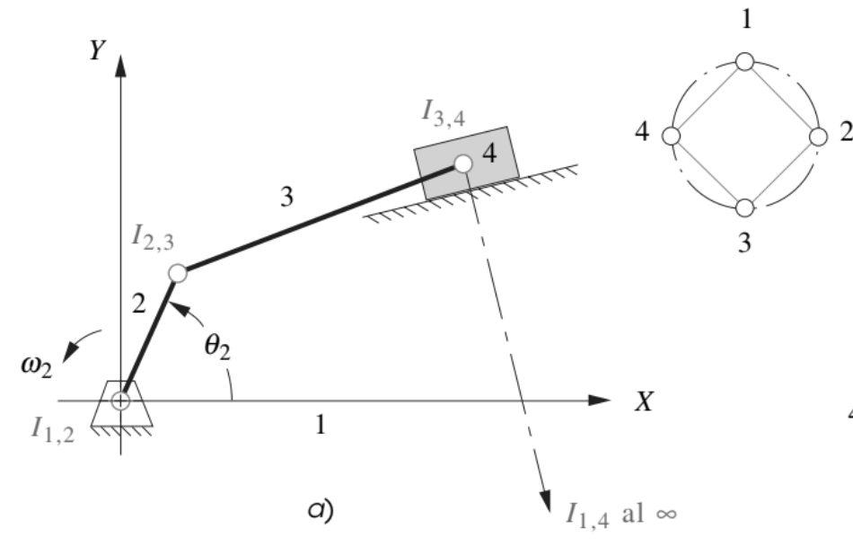 Localiza los centros instantáneos del mecanismo mostrado.