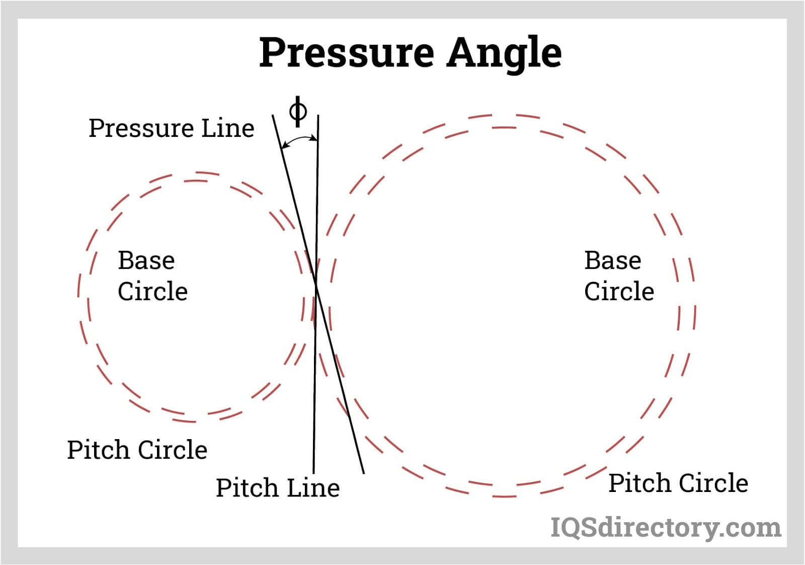 La forma real del diente del engrane depende del ángulo de presión, como se ve en la figura .