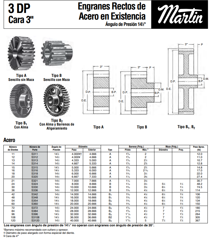 Los términos y símbolos se apegan, en inglés, a las normas de la American Gear Manufacturers Association (AGMA)