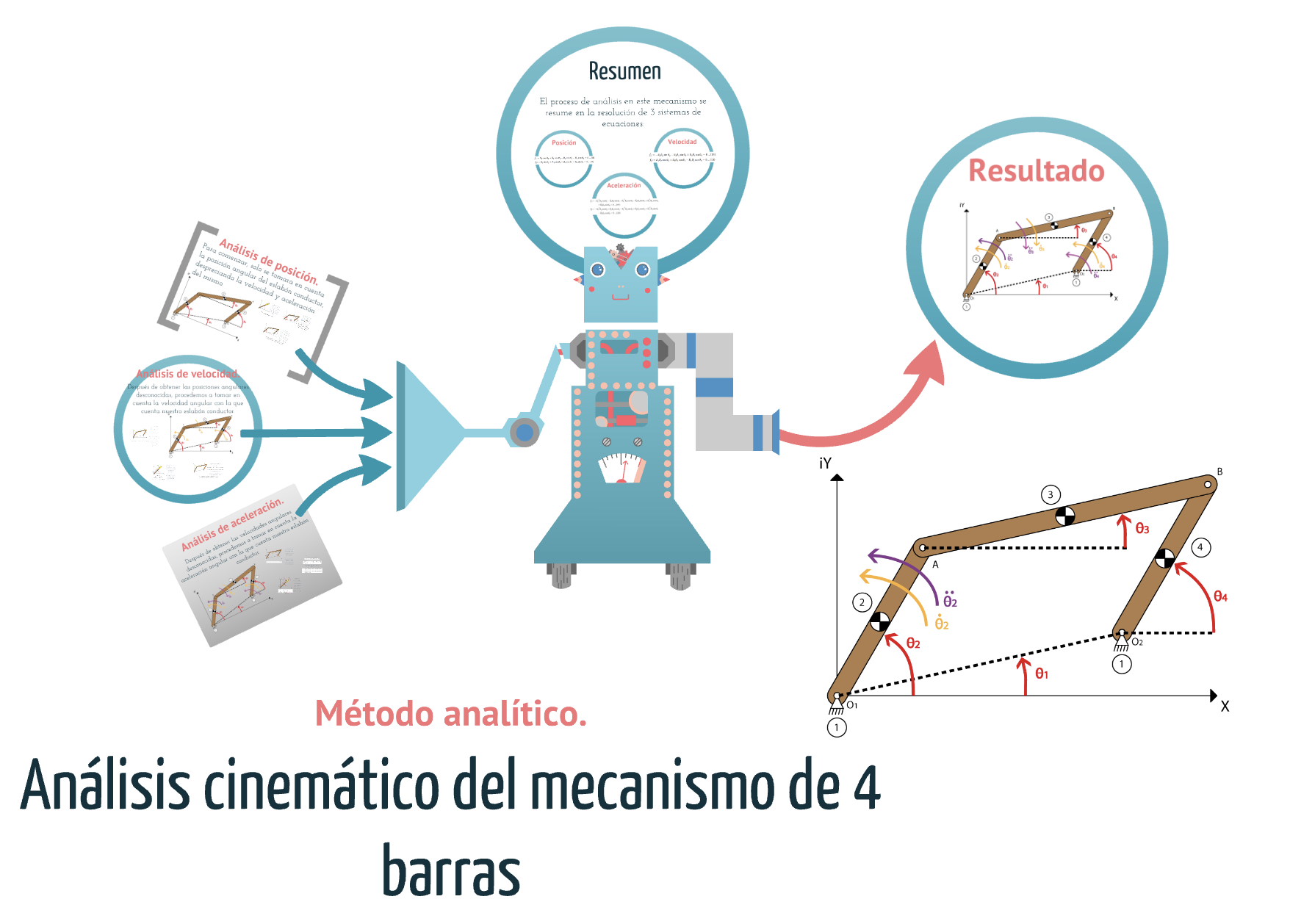 3. Síntesis dimensional. Luego de definir el tipo de mecanismo, lo siguiente es dimensionar los elementos con el uso de técnicas de síntesis analíticas, gráficas y computacionales.