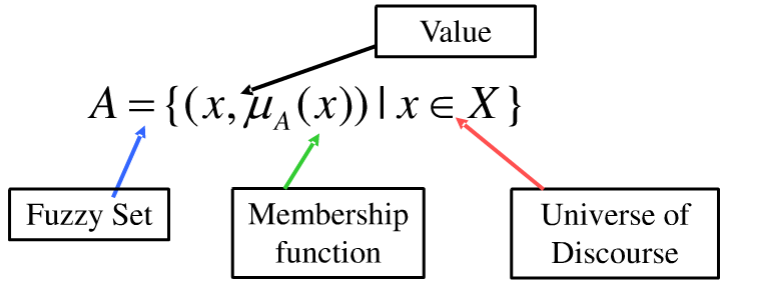 Asumamos que X es la colección de objetos representado por x, un conjunto difuso A en X es un conjunto de pares ordenados.