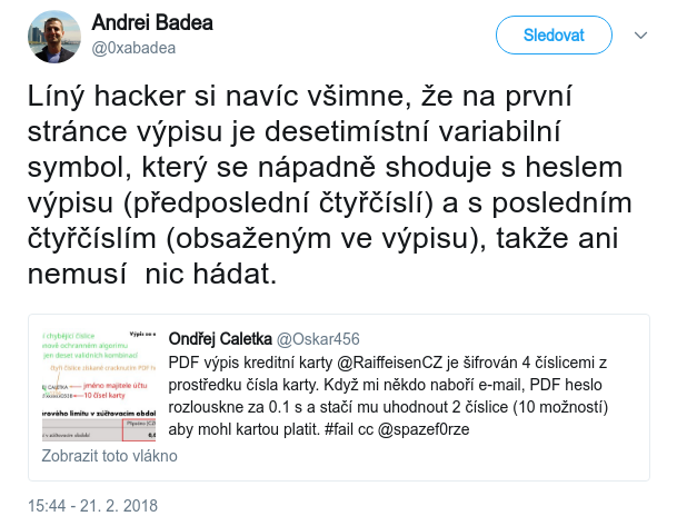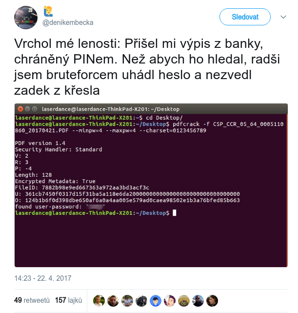 V tomto případě šifrování PDF situaci výrazně zhoršuje vyzrazením čtyř „tajných“ číslic.