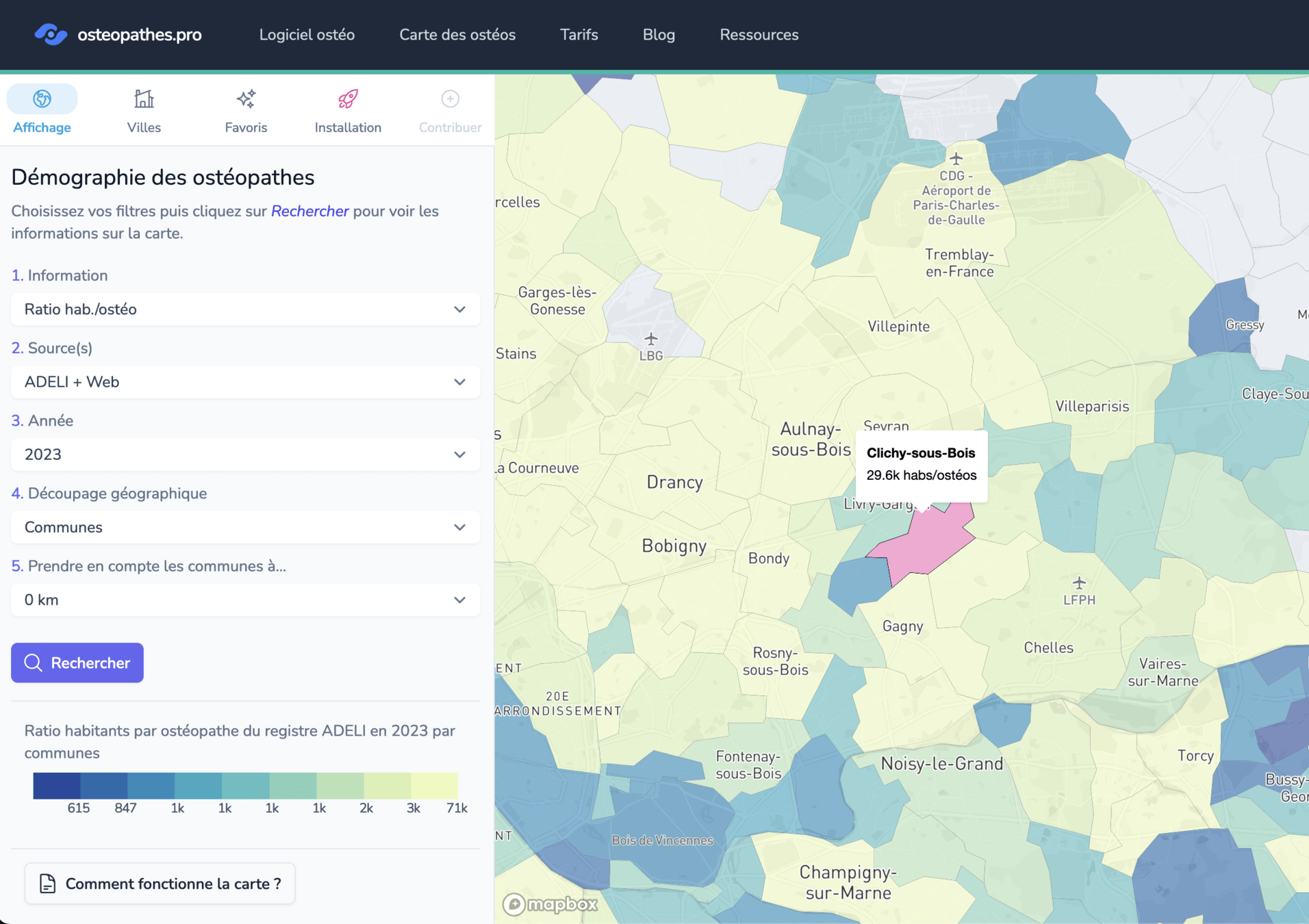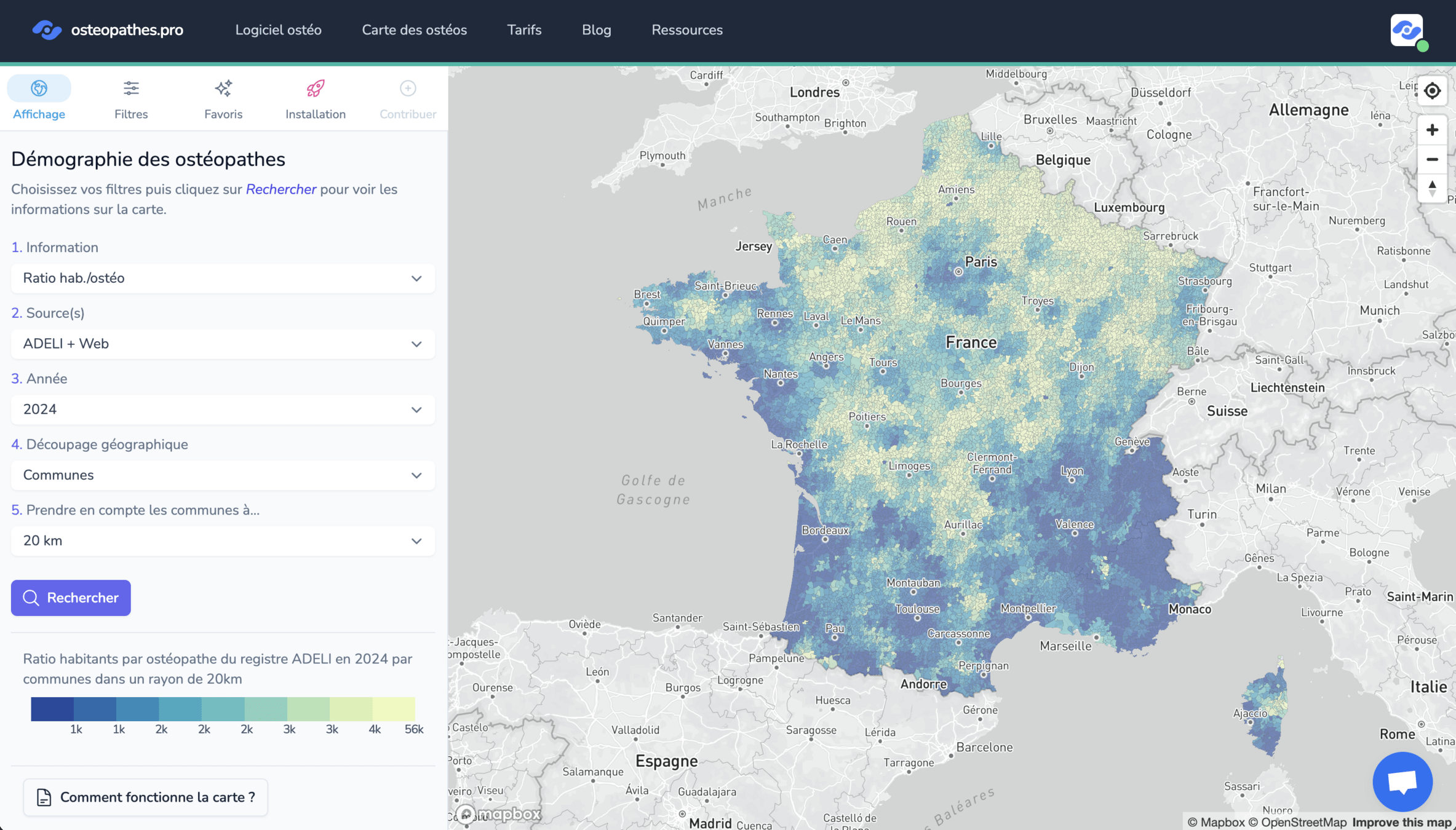 Presque 30k hab/ostéo d'un côté