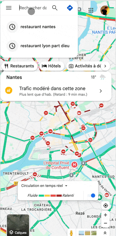 Comme souvent, on va chercher sur Google Maps les restaurants proches avec des bons avis.