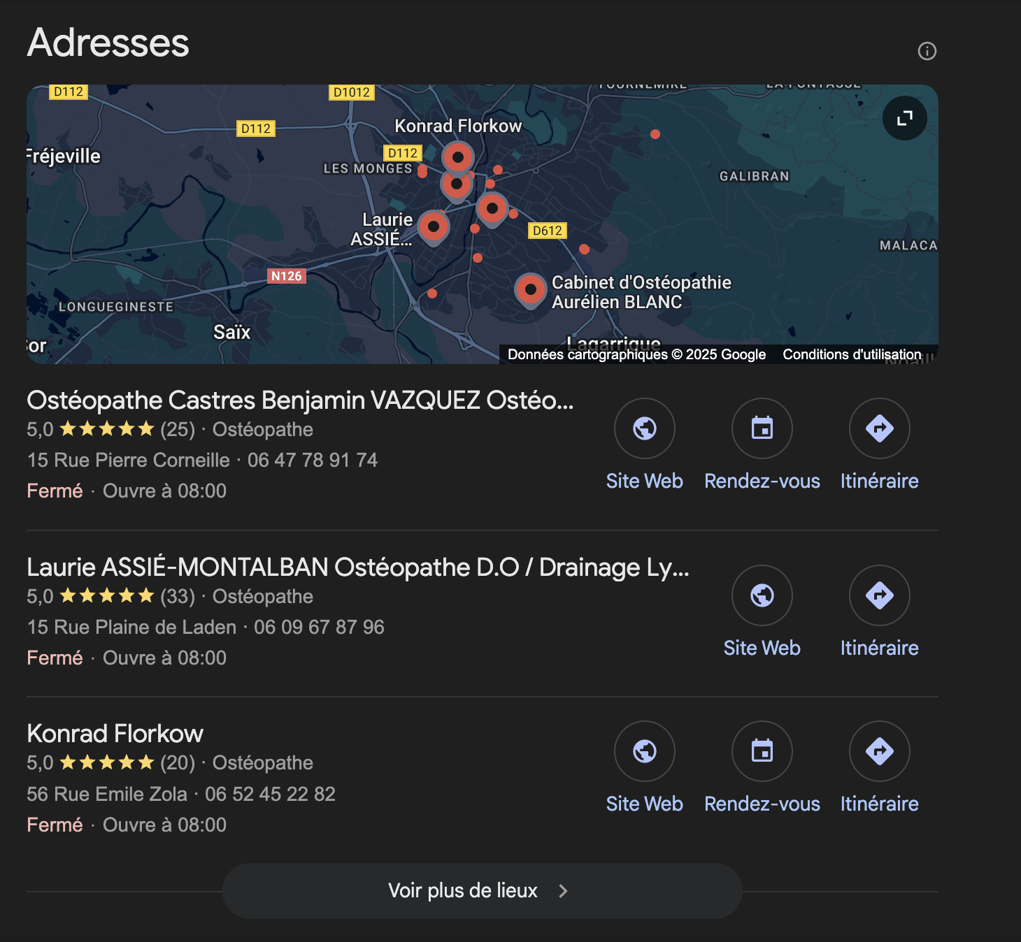 Les avis ont aussi un effet sur la visibilité dans les résultats de recherche Google.