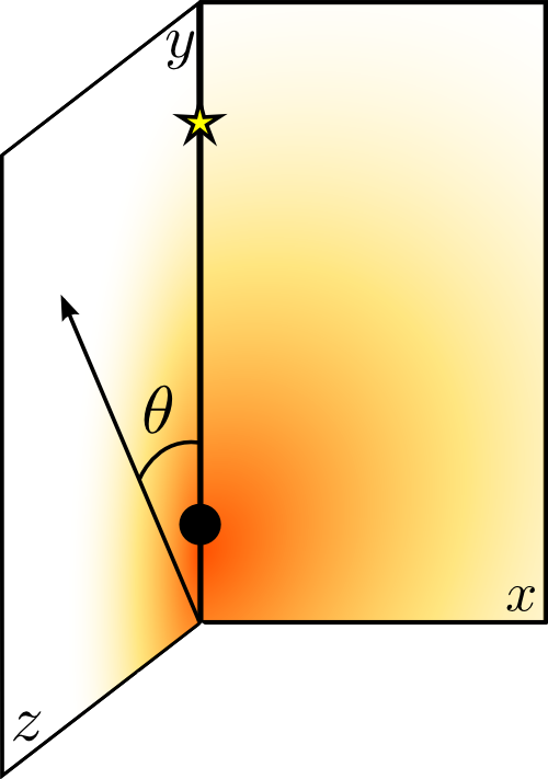 The observer will be placed in the z-y plane forming an angle theta with the vertical axis.