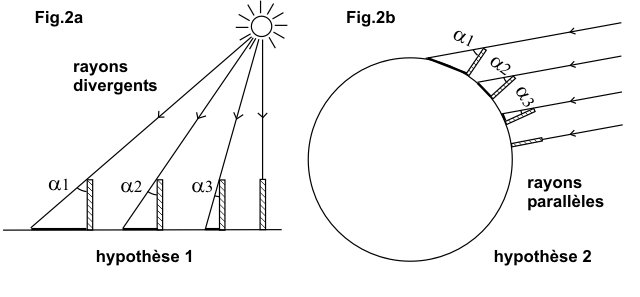 El hecho que conocía Eratóstenes es que en un mismo momento del año la sombra de un mismo objeto proyectaba sombras diferentes en diferentes sitios del planeta.