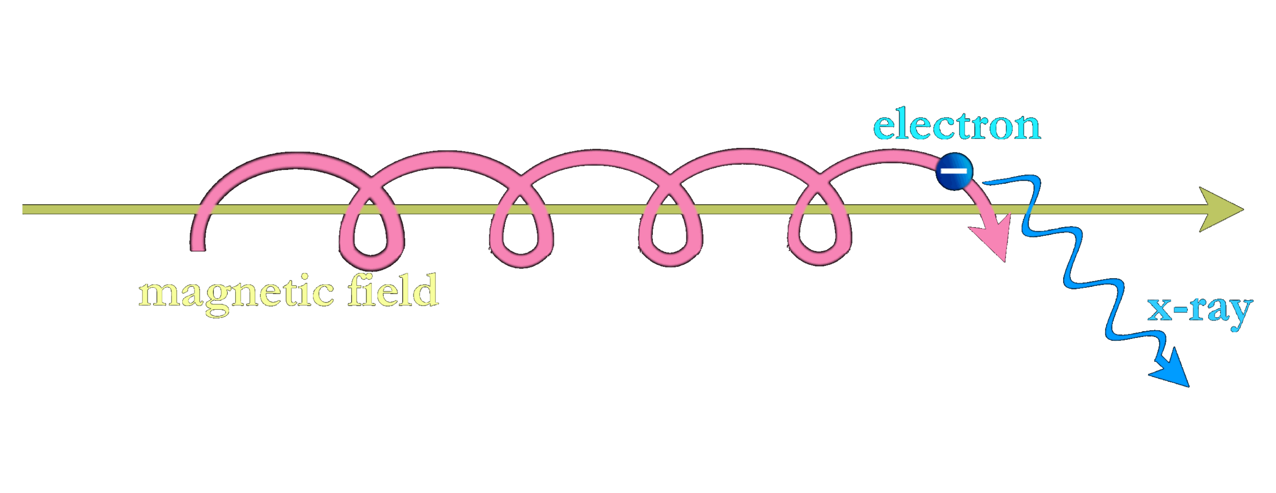 Electrones acelerados, espiraleando alrededor de una línea de campo magnético emiten fotones de alta energía.