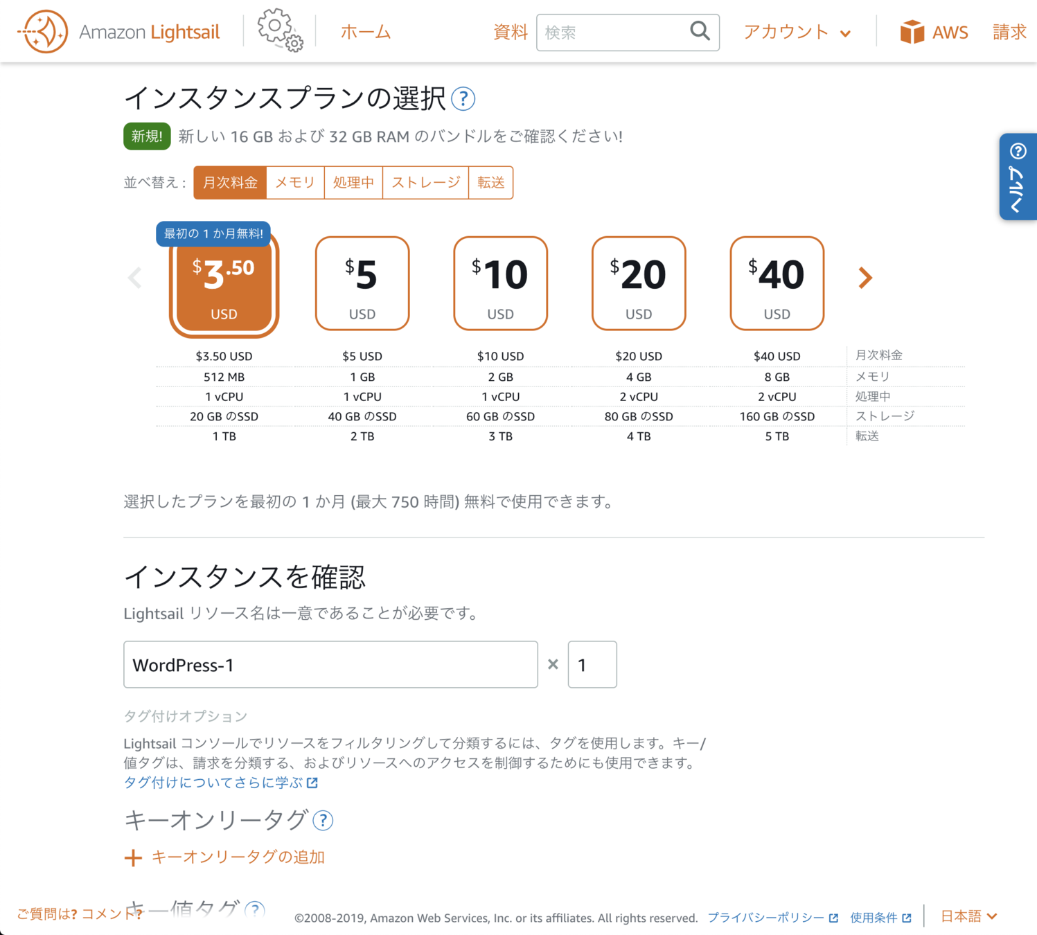 $3.50のプランは、最初の1ヶ月無料なので、サクッとインスタンスを作って実験し、削除するようなお試し環境として使いやすいです。