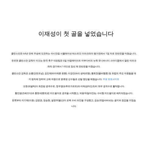 위르겐 클린스만 감독이 이끄는 한국 축구 대표팀은 6일 아랍에미리트(UAE) 아부다비의 뉴욕 유니버시티 스타디움에서 열린 이라크와의 평가전에서 전반 40분 이재성의 골로 1-0으로 앞서고 있습니다.