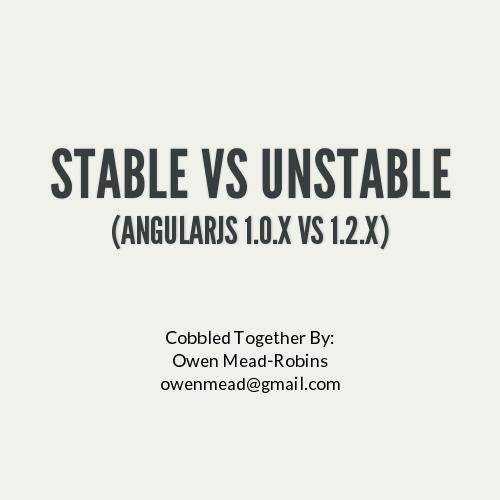 A quick presentation covering some of the changes from AngularJS 1.0.x to 1.2.x