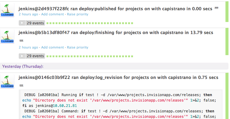 Running echo "Branch master deployed as release 20160421215335 by jenkins" >> revisions.logCapistrano