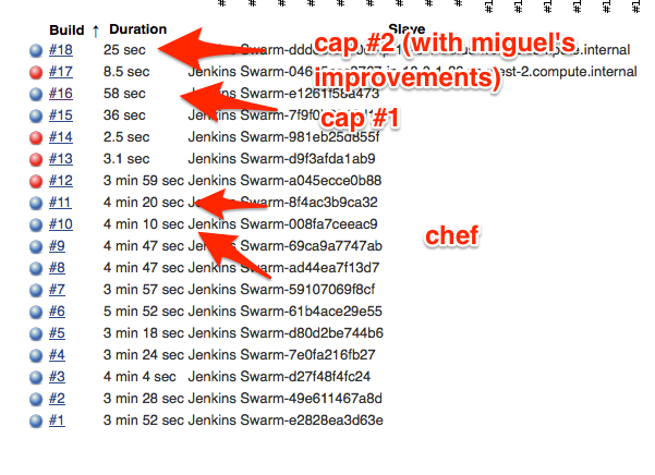 - Capistrano baja el zip de S3 y crea el release en cada nodo en paralelo