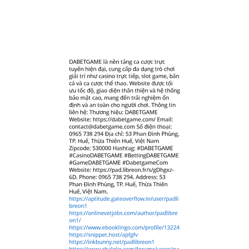 Website: https://pad.libreon.fr/s/gDhgxz-6Dhttps://pad.libreon.fr/s/gDhgxz-6D DABETGAME là nền tảng ca cược trực tuyến hiện đại, cung cấp đa dạng trò chơi giải trí như casino trực tiếp, slot game, bắn cá và ca cược thể thao. Website được tối ưu tốc độ, giao diện thân thiện và hệ thố