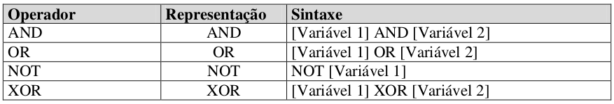 - Utilizados em expressões lógicas. Retornam TRUE ou FALSE