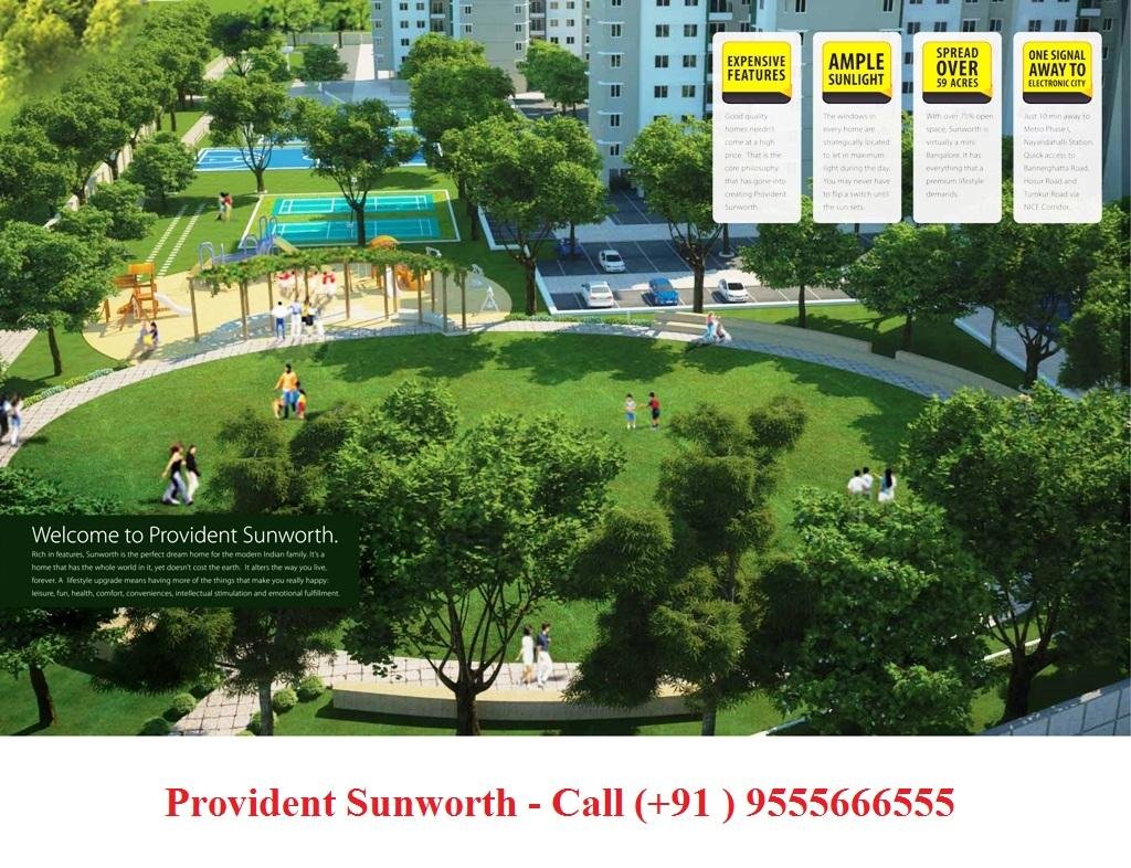 Provident Sunworth is new housing Project which is located near Rajarajeshwari Medical College, Mysore road-Nice Junction, Bangalore. Provident Sunworth offers 2 & 3 BHK apartments with spanning over 59 acres will host about 5500 apartments. Visit Our Site:- http://www.providentsunworth.net.in