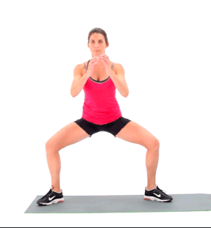 Bajar con el tronco recto hasta obtener un ángulo de 90° logrado entre el muslo y la pierna.