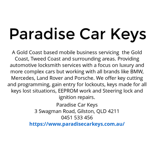 https://www.paradisecarkeys.com.au/ A Gold Coast based mobile business servicing the Gold Coast, Tweed Coast & surrounding areas.
