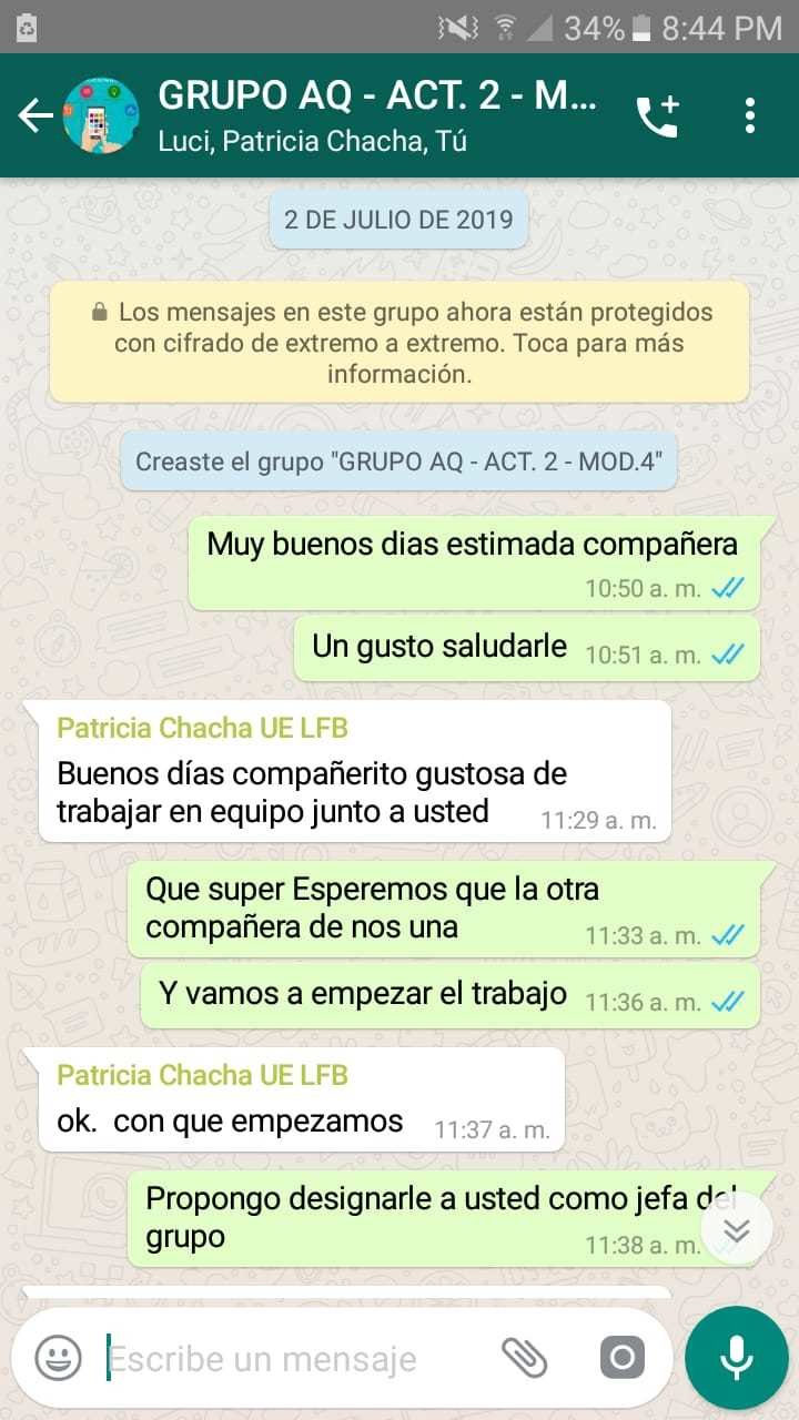 Creación y Participación del Grupo en la Herramienta WhatsApp