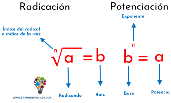 La radicación es la operación inversa a la potenciación, es la que permite extraer o encontrar la raíz de un número, básicamente consiste en encontrar la base de una potencia conociendo su exponente.