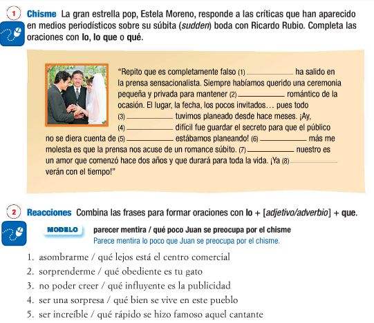 Escribe 3 oraciones sobre tu fin de semana con "lo"