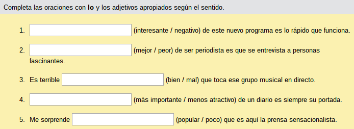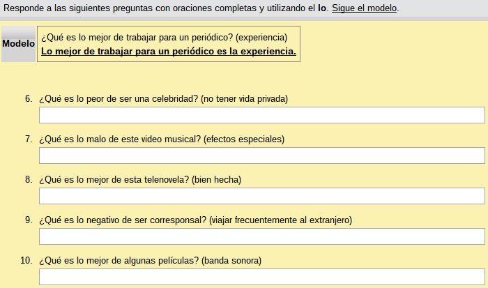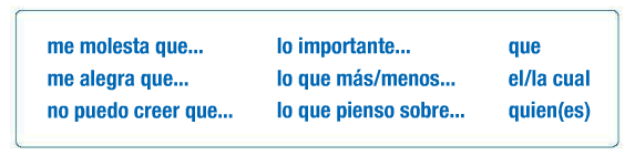 Ej.: Lo que más me gustó de mi fin de semana fue ir al circo.