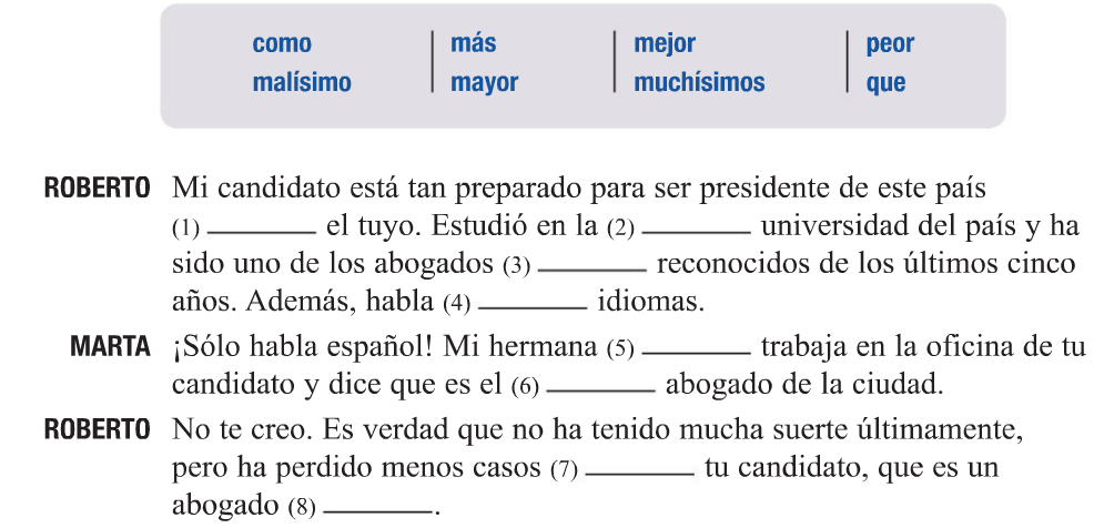 Escribe 3 oraciones con superlativos y 3 con comparativos