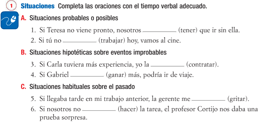 Cuando termines escribe dos oraciones con cada tiempo verbal.