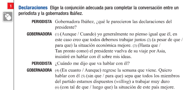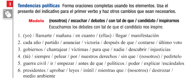 Utiliza al menos 5 de las siguientes frases: