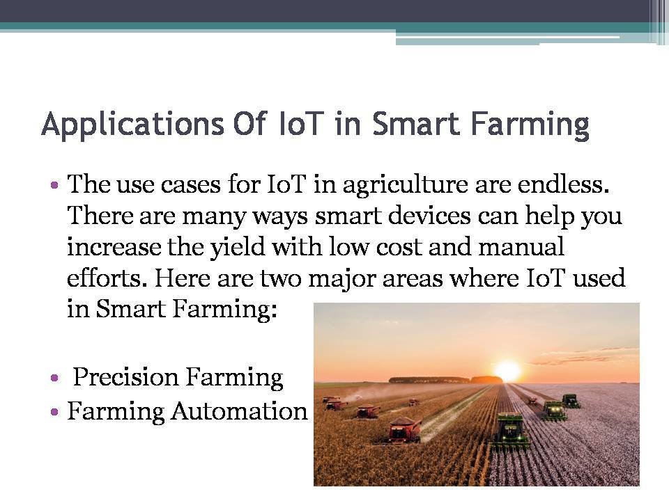 Applying IoT technology to agriculture have greatest impact in increasing yield with low coast and efforts. Here are two major areas of agriculture that IoT has revolutionise.