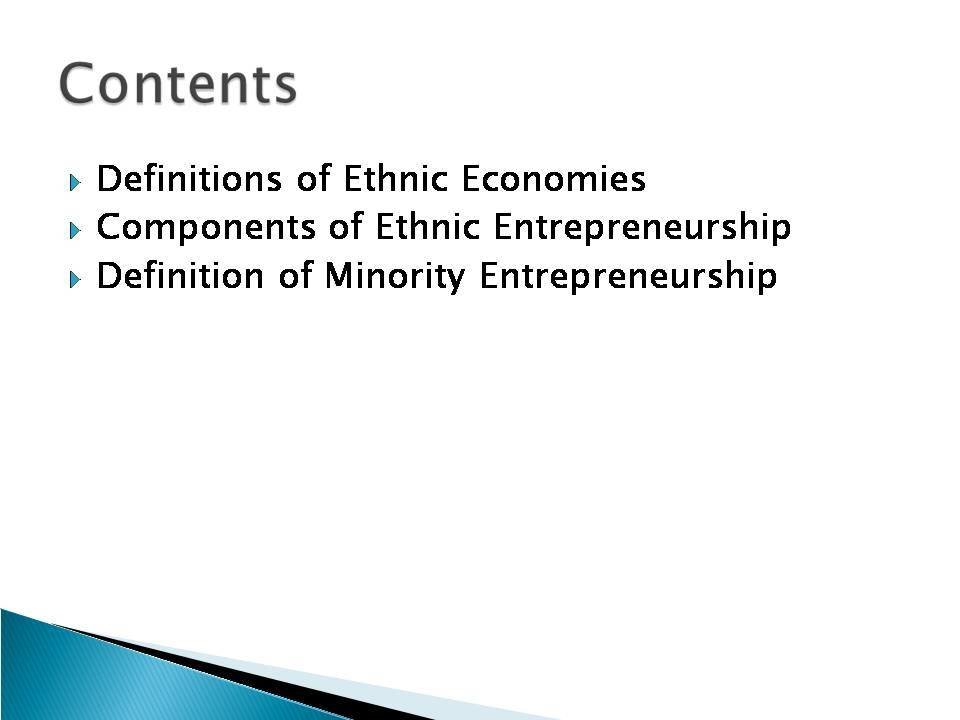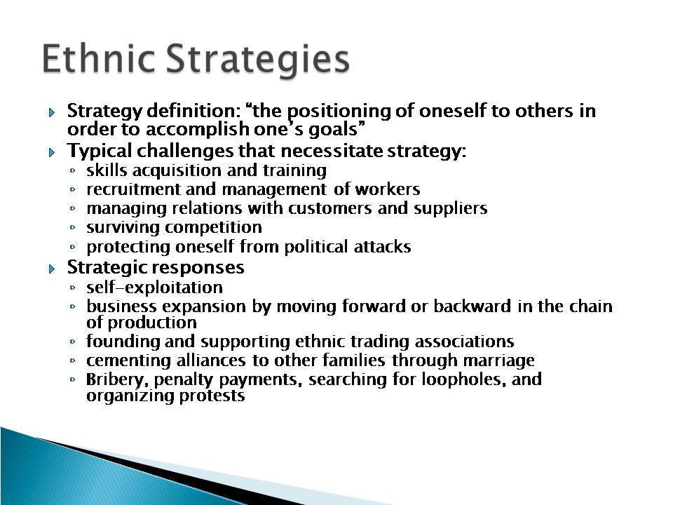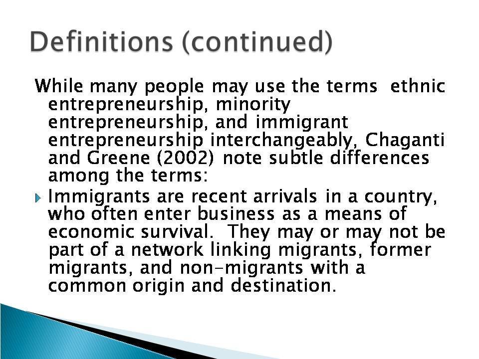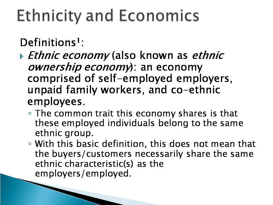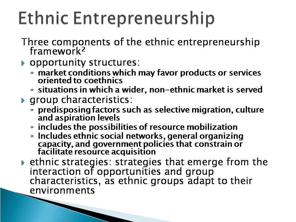 In the context of ethnic entrepreneurship, “ethnic” refers to ‘a set of connections and regular patterns of interaction among people sharing common national background or migration experiences.’