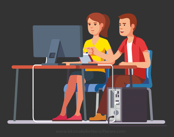 En person sier hva som skal skrives, den andre skriver.