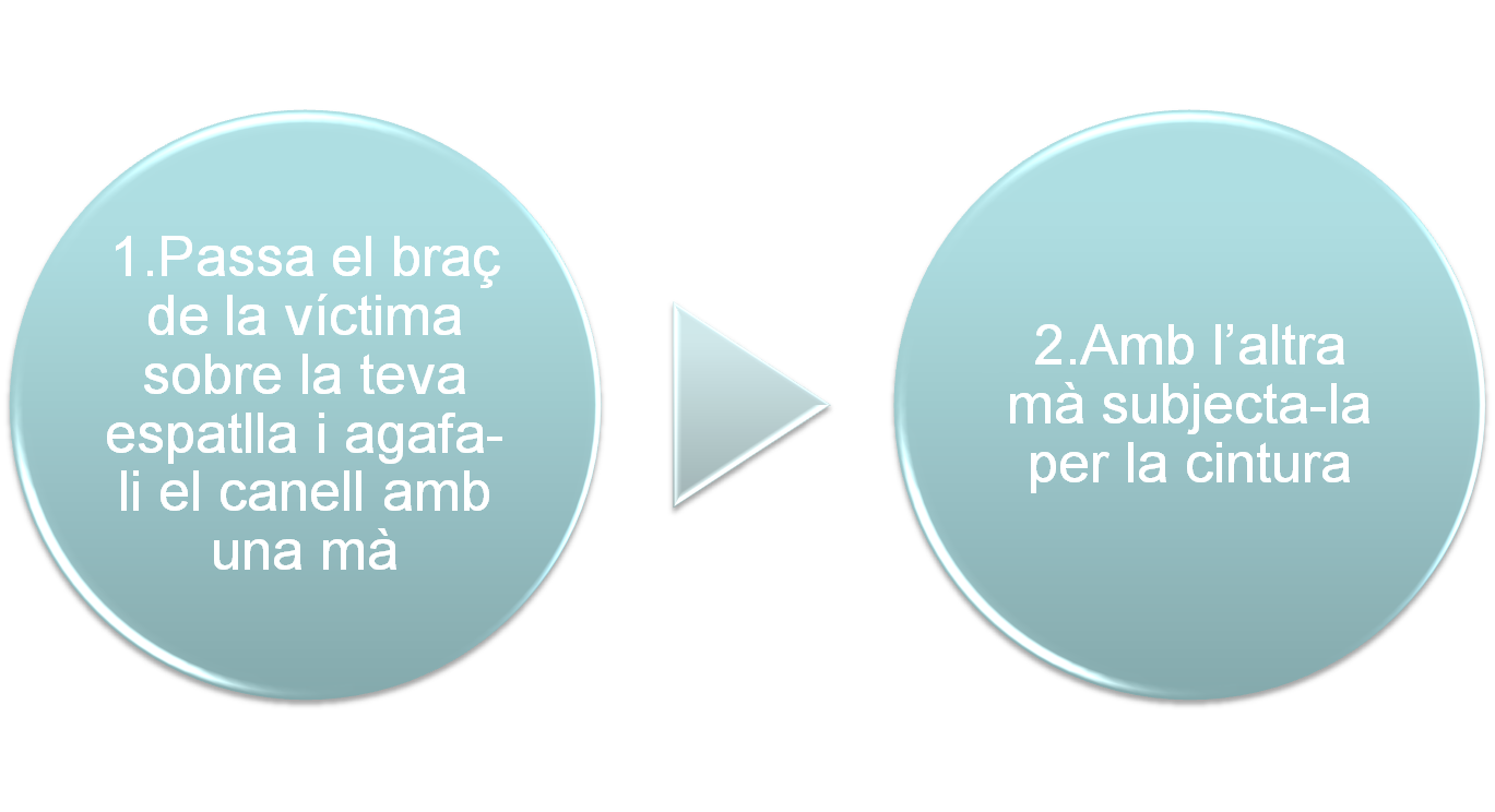 ●A la cadireta "en quadrat": Quan la víctima es pogui subjectar amb les mans a la cadira.