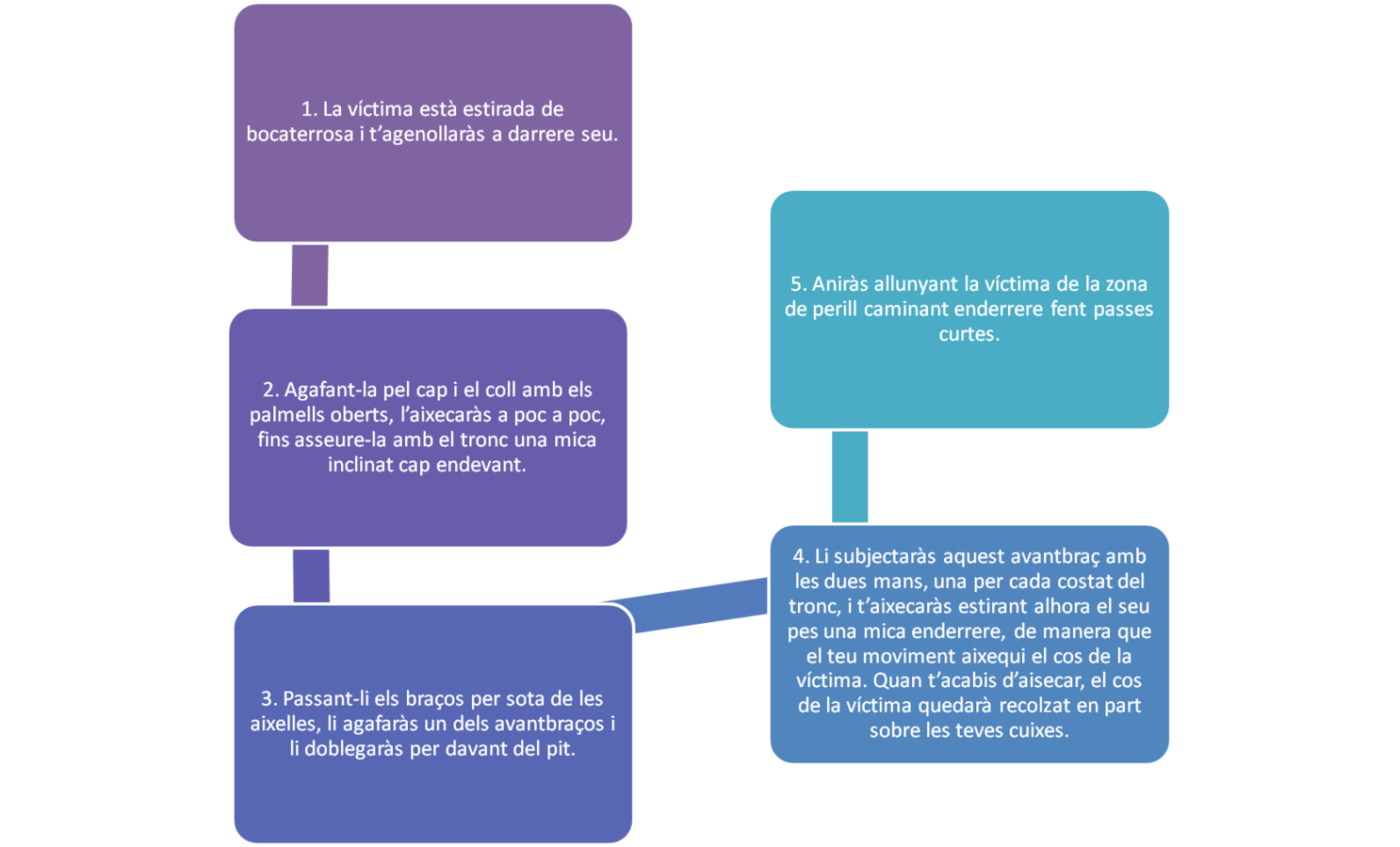 Si la persona està inconscient o no es pot posar dempeus, la podràs moure arrossegant-la. Aquesta és una acció molt habitual durant el salvament de les víctimes. El procediment més habitual és la subjecció de Rauteck, encara que n'hi ha molts d'altres.