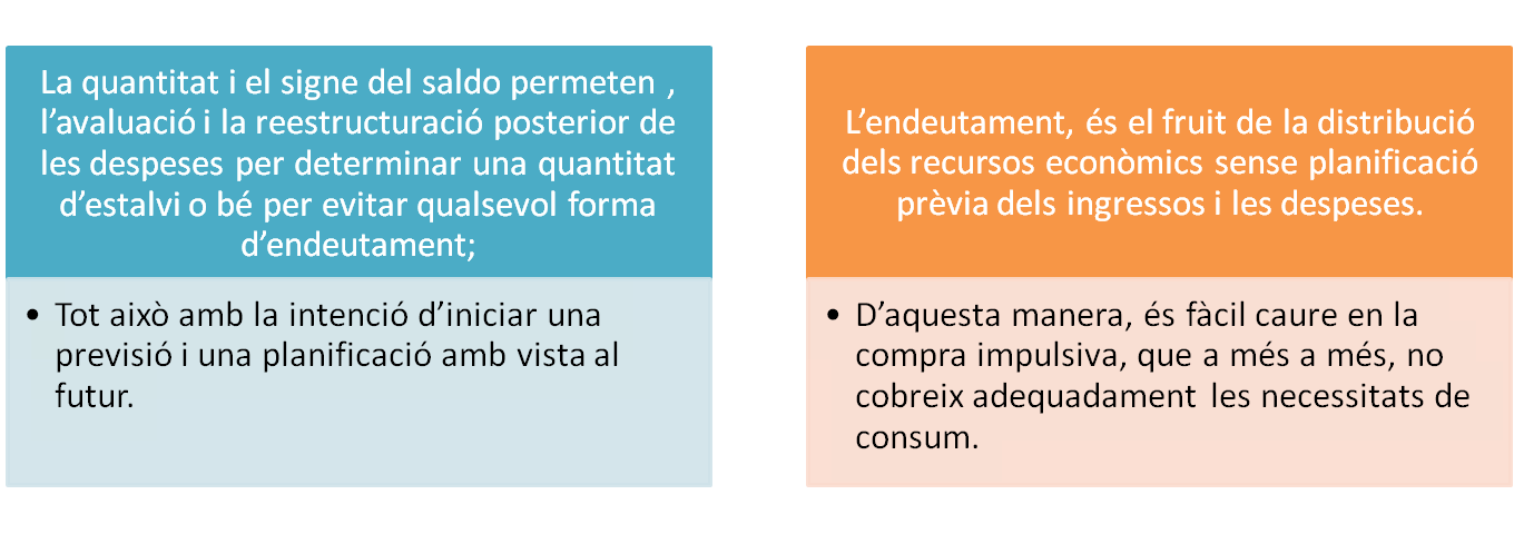 Si el saldo és positiu, es disposa d'una quantitat de dienrs per gastar o per estalviar, si és negatiu, s'incorre en un endeutament.