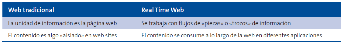 RTW es el conjunto de tecnologías y prácticas que hacen que los usuarios reciban información tan pronto como es publicada por sus autores en la web.