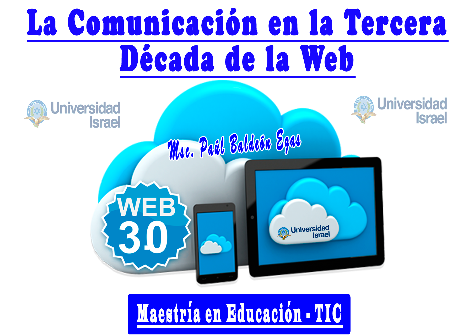 La asignatura de la comunicación en la tercera década de la web, está basada en la web semántica, la cual integra tendencias tecnológicas aplicadas a la educación, y metodologías novedosas que se puede aplicar en la práctica docente en el contexto social educativo. Dentro de los temas primordiales de la asignatura es la caracterización de la tercera década de la web, la web en tiempo real, dispositivos móviles, cloud computing, y su integración en un sitio web.