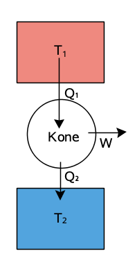 lämpöenergiaa siirtyy kuumasta kylmään, osa energiasta muuttuu työksi