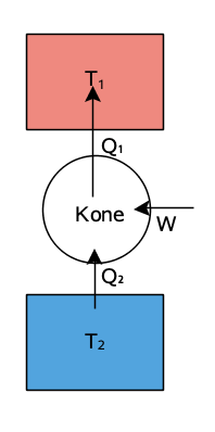 - Laite, joka siirtää lämpöä kylmäsäiliöstä lämpösäiliöön