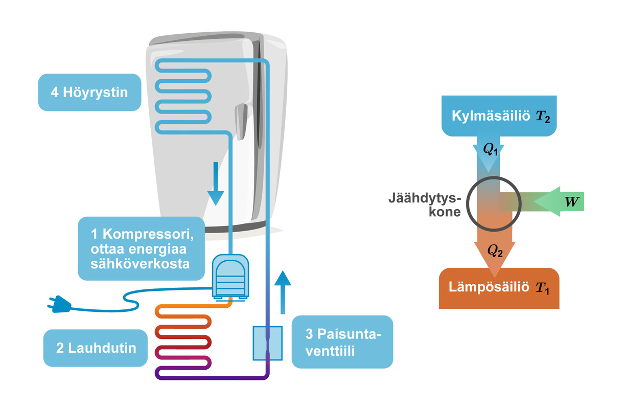- Jäähdytys perustuu pakotettuihin olomuodon muutoksiin
