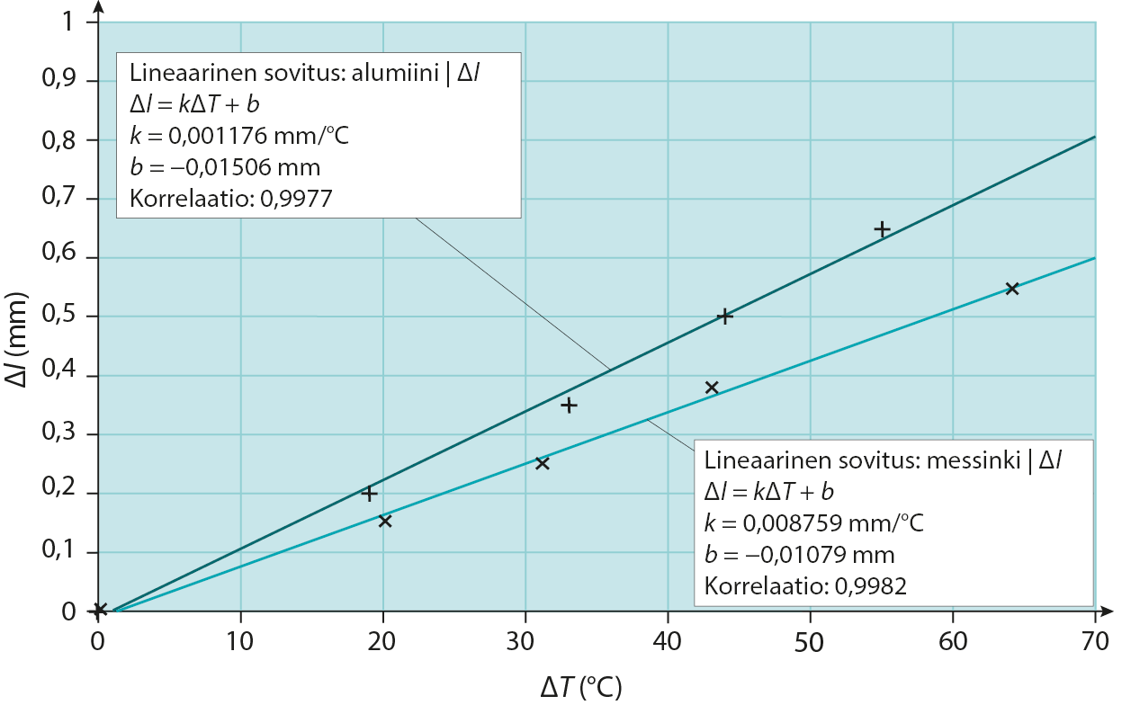 - Mittausaineistosta voidaan piirtää (ΔT, Δl)-kuvaaja