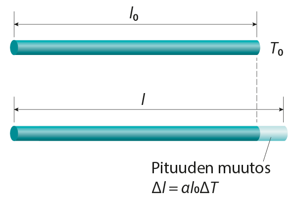 Lämpölaajenemisen takia tangon pituus noudattaa mallia