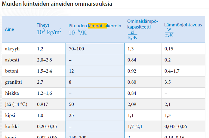 - Kulmakertoimeen vaikuttaa laajeneva materiaali ja alkuperäinen pituus