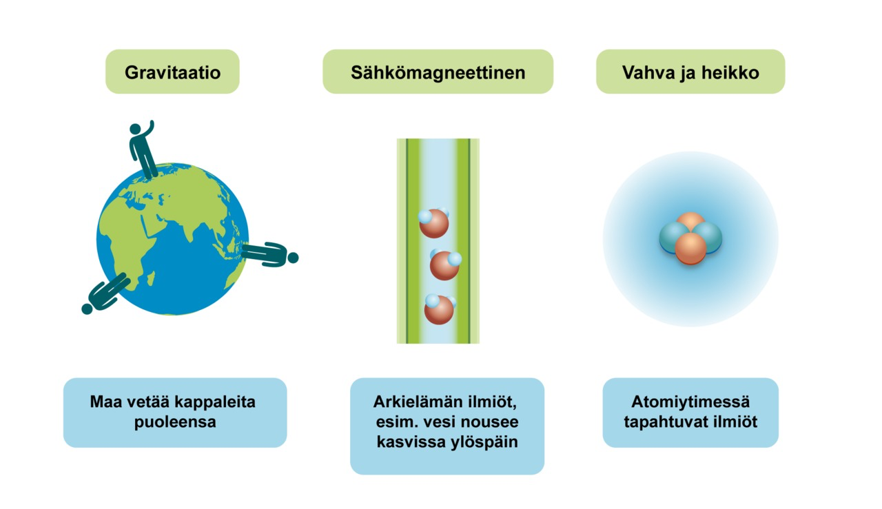 - Kaikki luonnonilmiöt selitetään neljän perusvuorovaikutuksen kautta